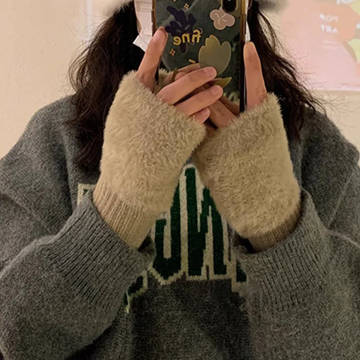 Stay cozy and elegant with these warm half-finger gloves. Made from soft knitted plush — perfect for typing, writing, or daily winter wear.