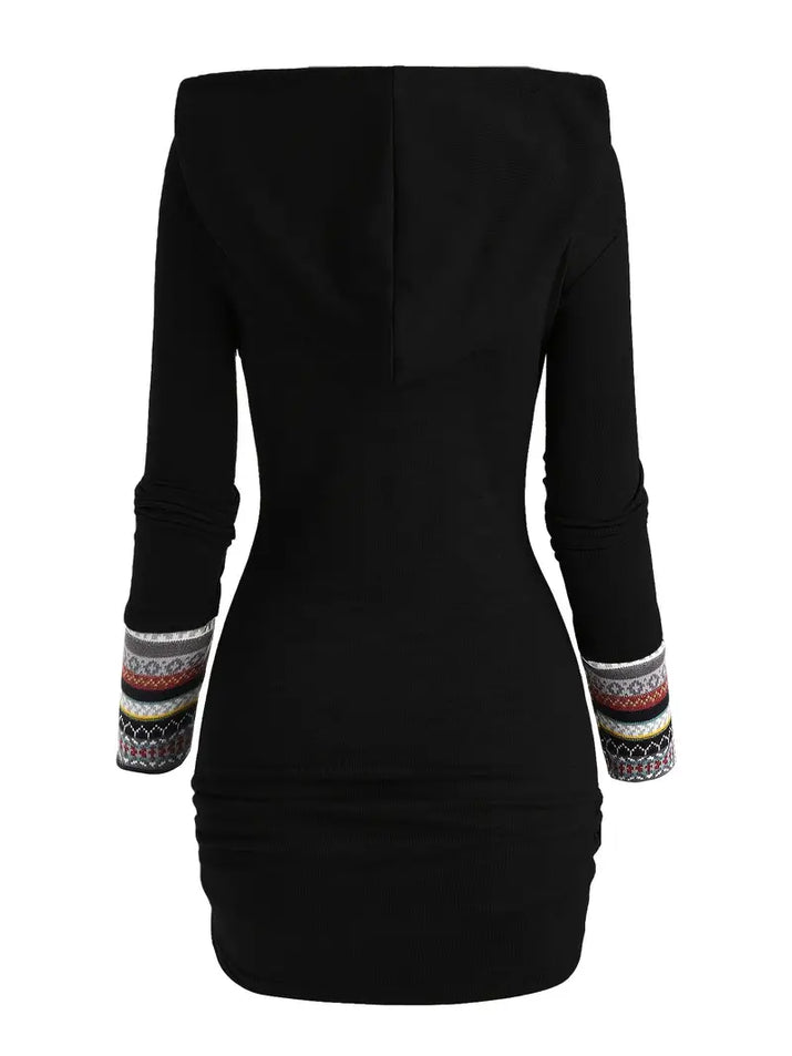 The TribalHood™ Cozy Hooded Dress blends comfort and statement style in one stunning piece. Made from soft, stretchy fabric with vibrant tribal patterns inside the hood, cuffs, and hem — it’s designed to flatter your shape while keeping you warm and confident all season.